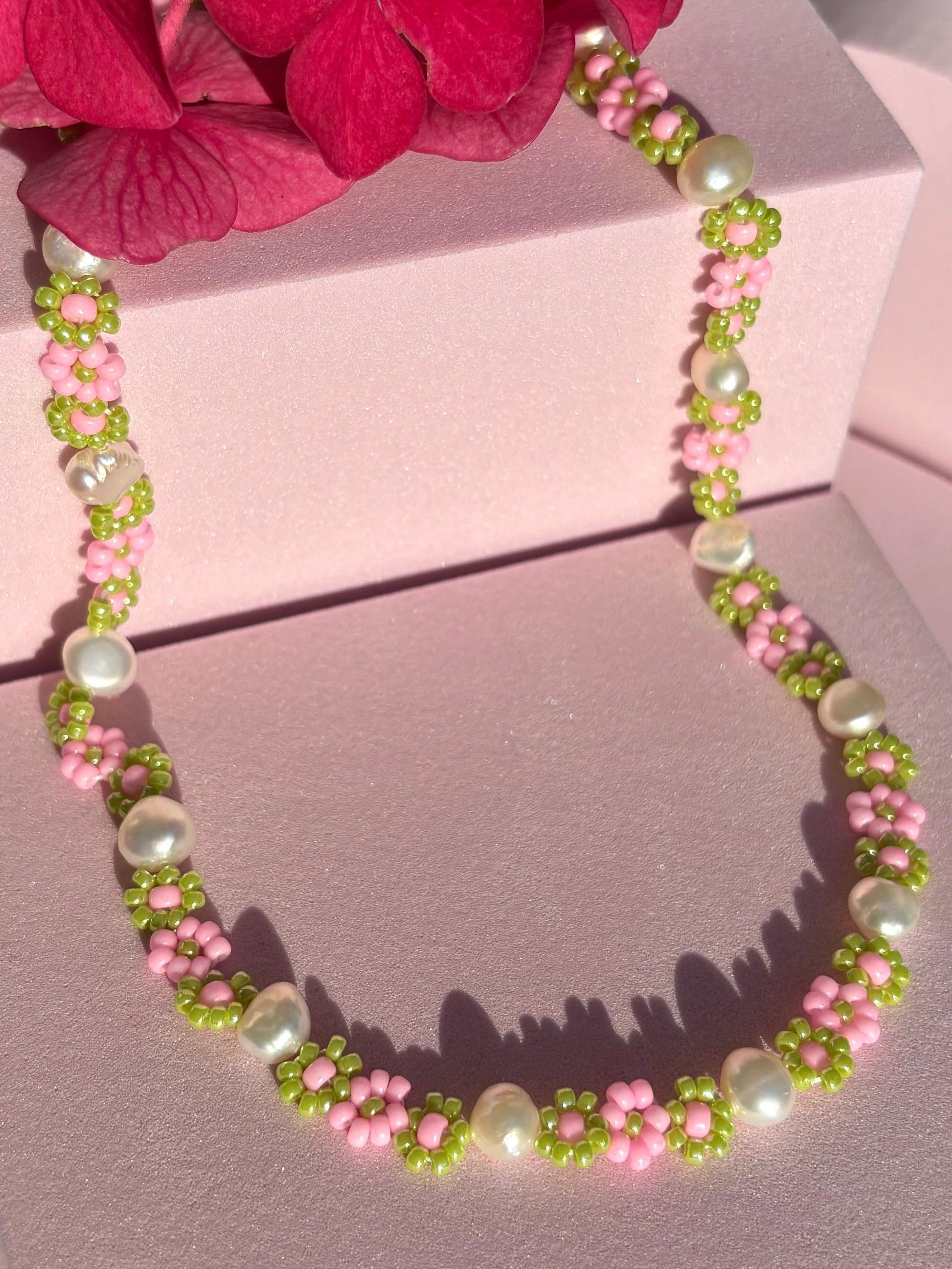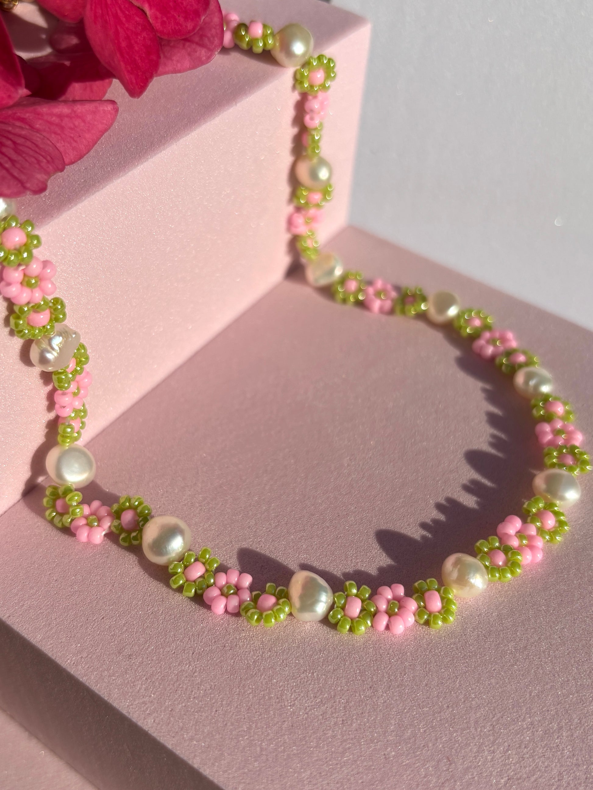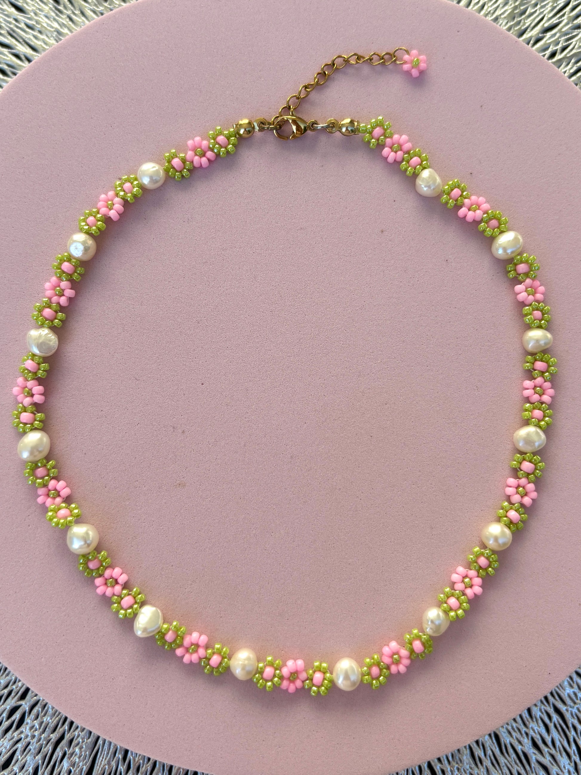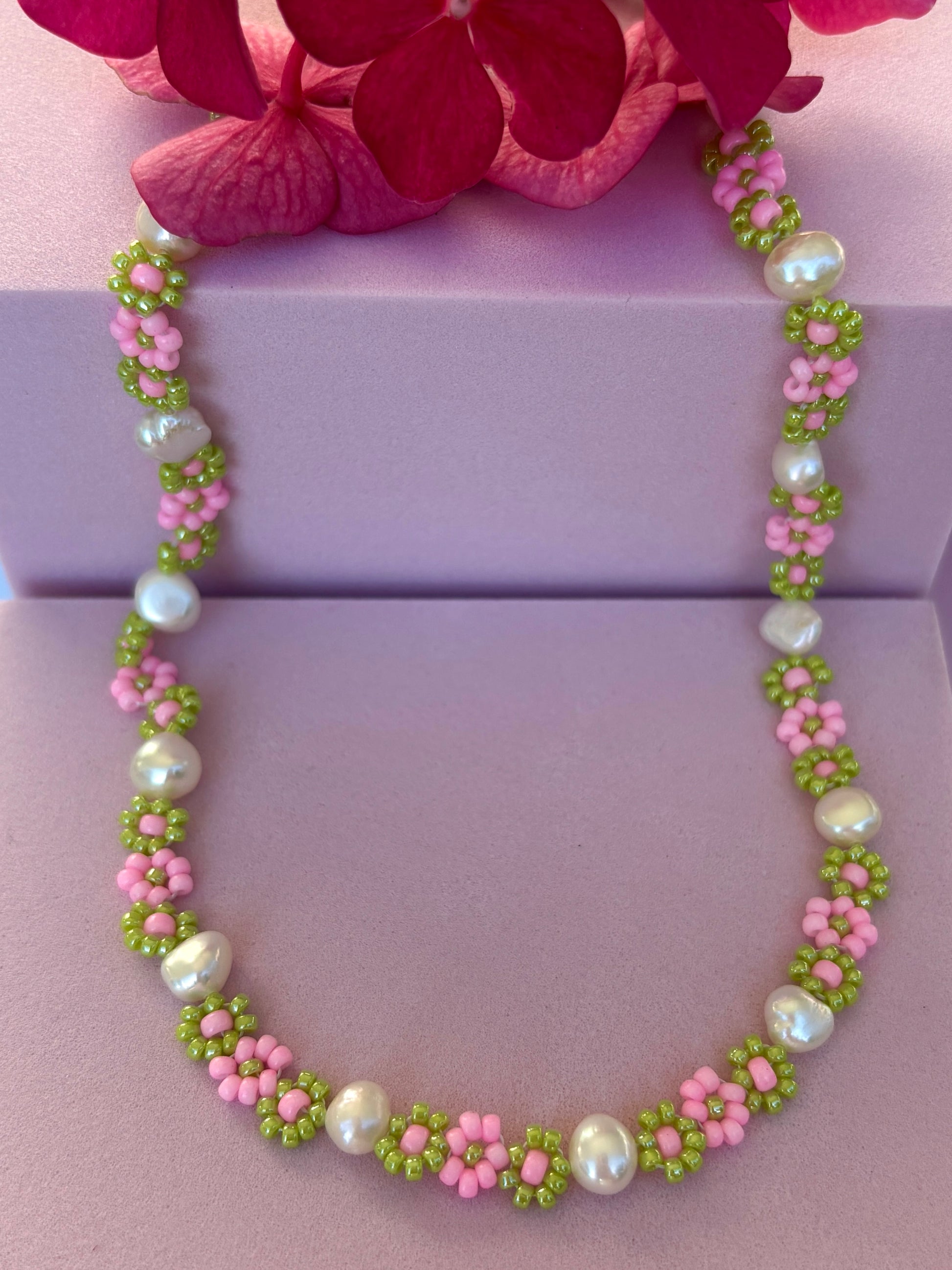 Die Dreamy Kette ist die perfekte Ergänzung für jedes Outfit - in harmonischem Rosa und Grün. Lass dich verzaubern von der perfekten Kombination dieser Farben und bringe Schwung und Leichtigkeit in dein Styling!