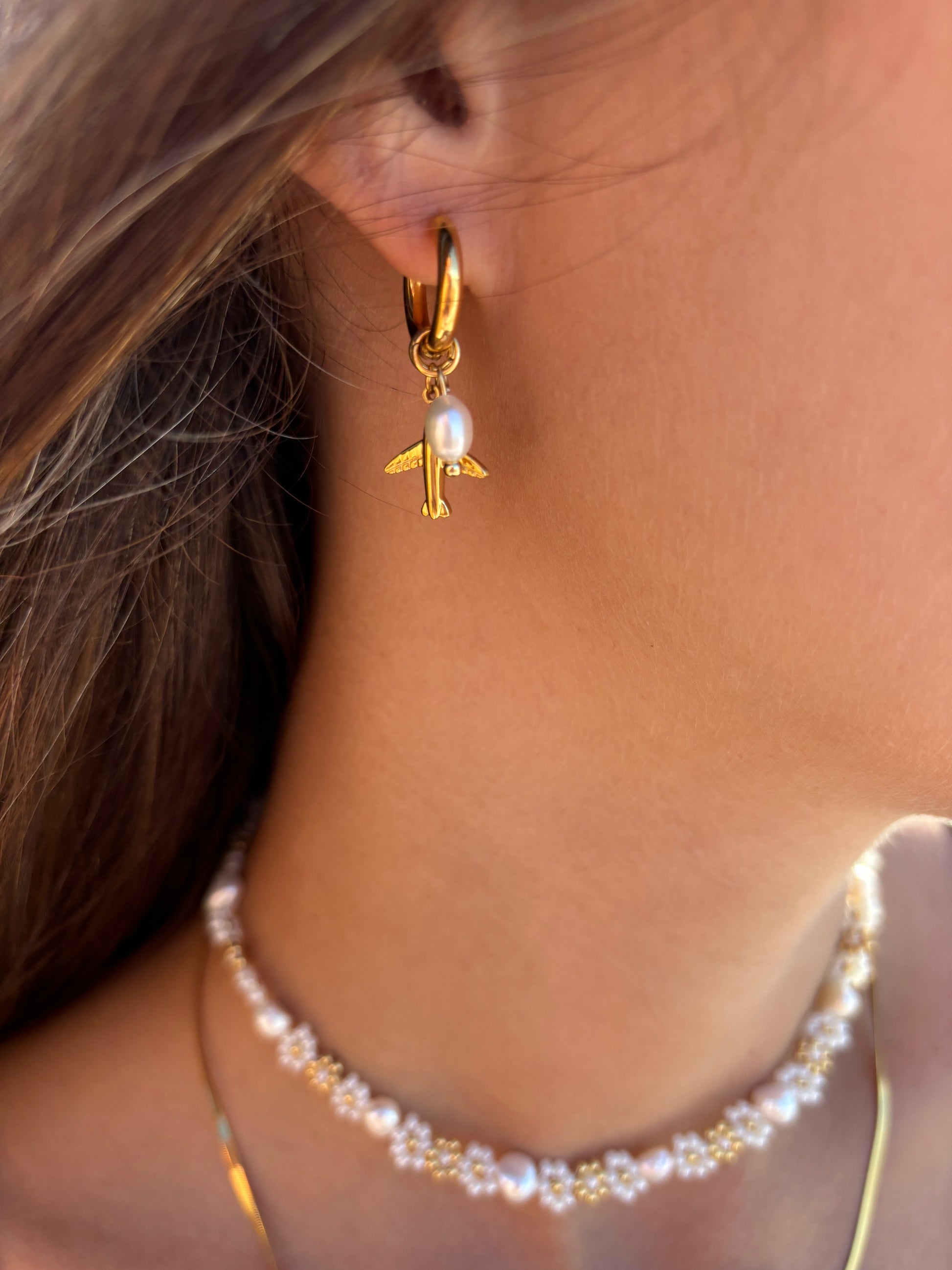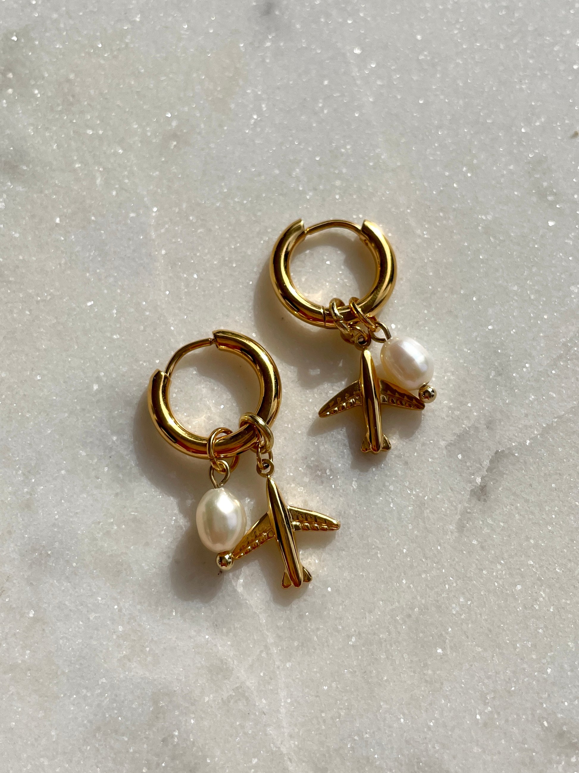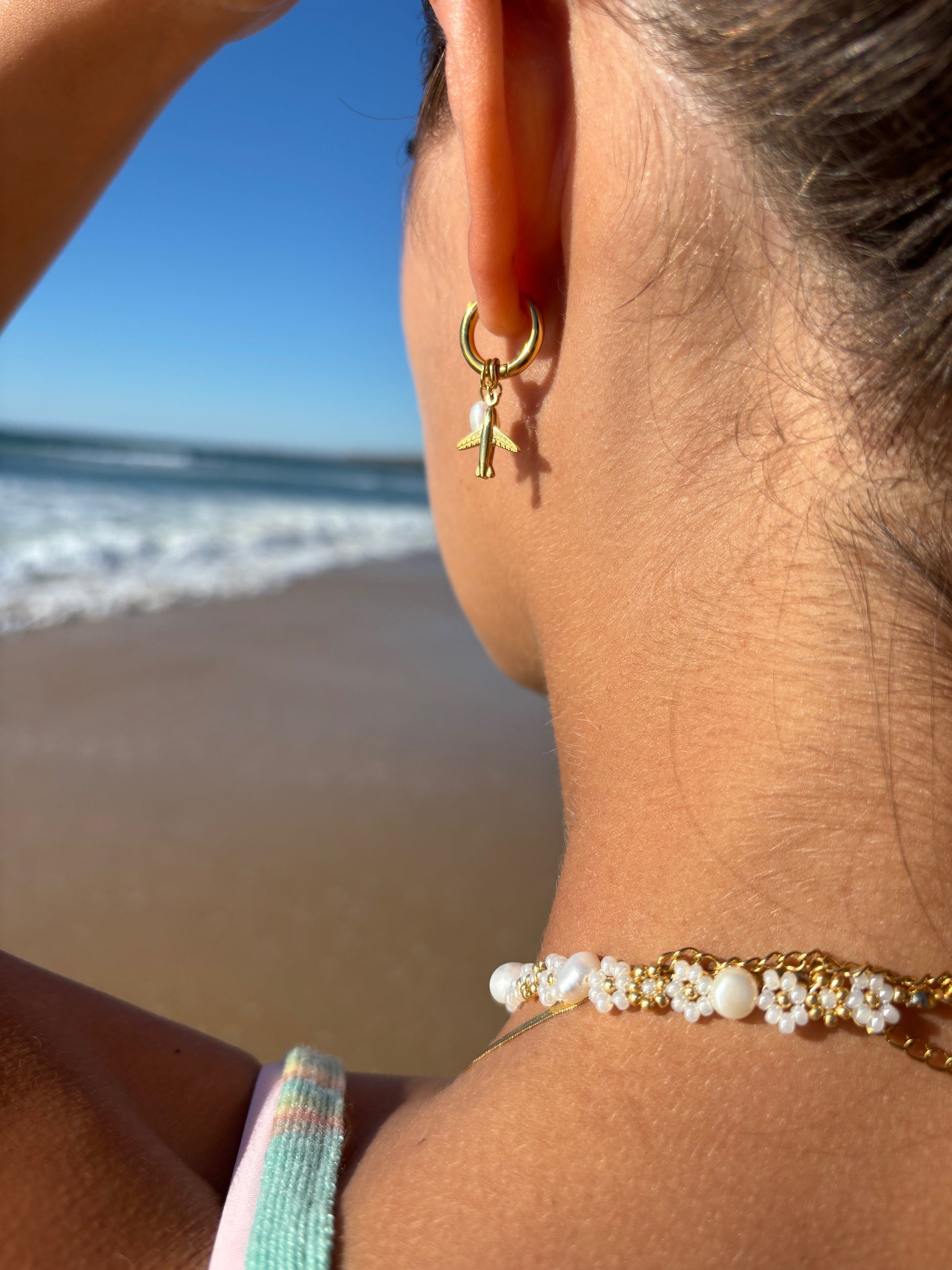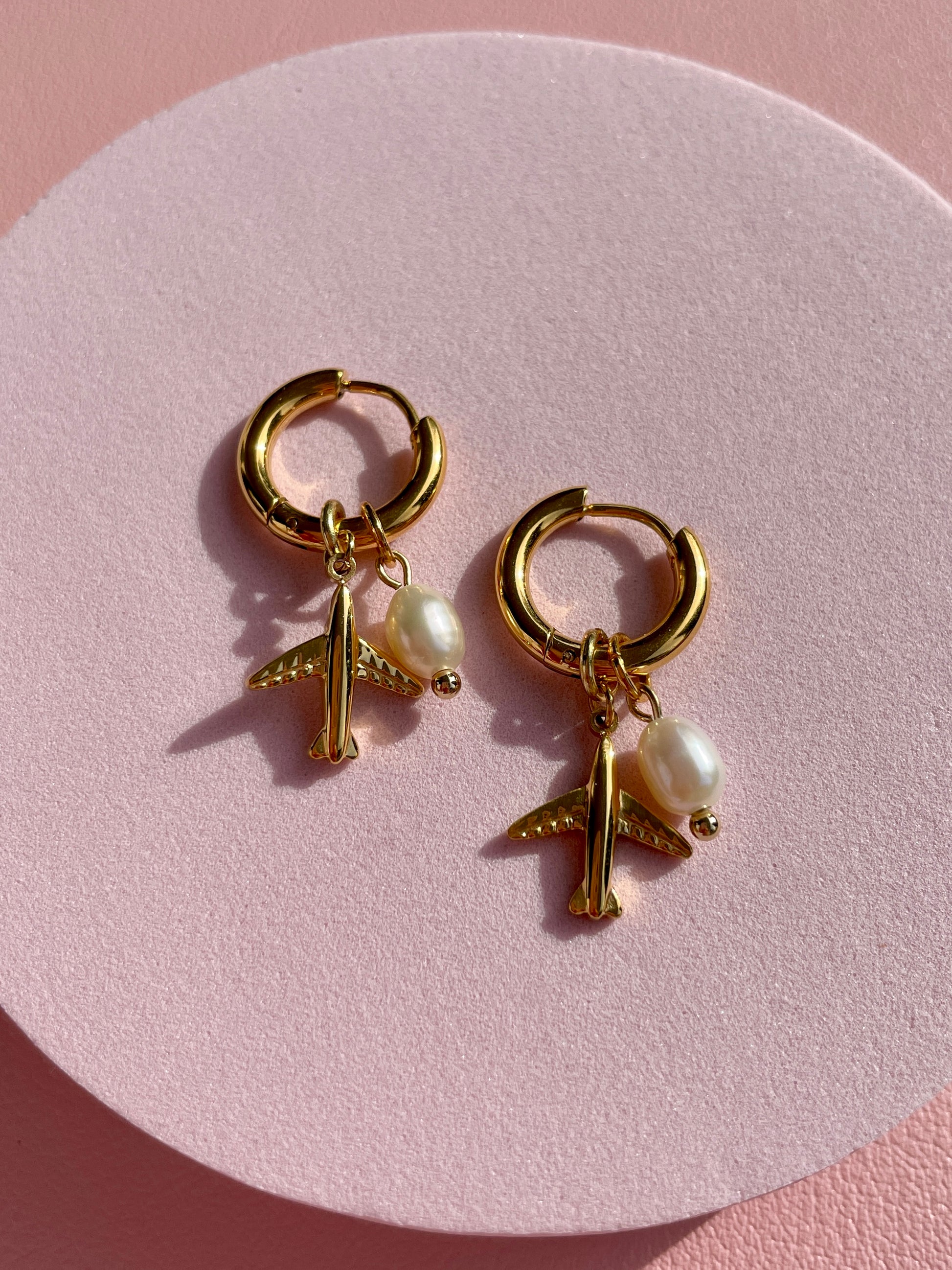 Sichere dir mit diesen Fly High Hoops ein stylisches Accessoire für dein nächstes Abenteuer! Die süßen Flugzeug Charms und Süßwasserperlen versprühen Fernweh pur. Perfekt für alle, die nicht genug vom Reisen bekommen können. ✈️☁️☀️