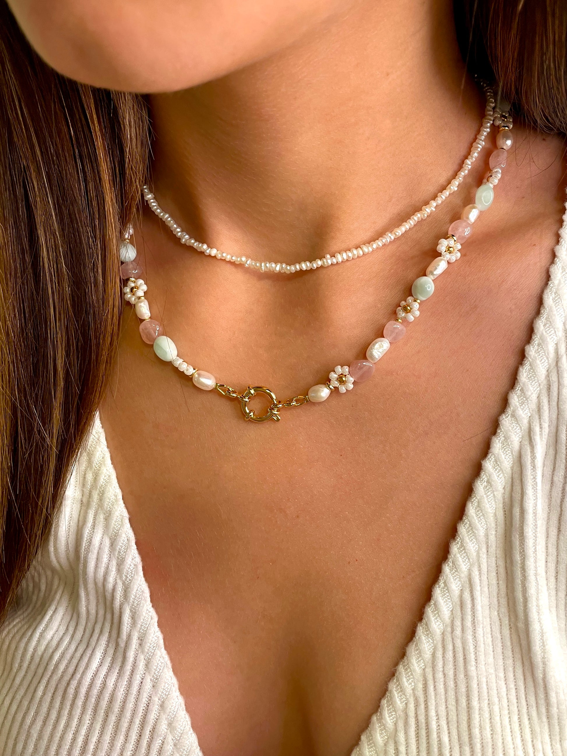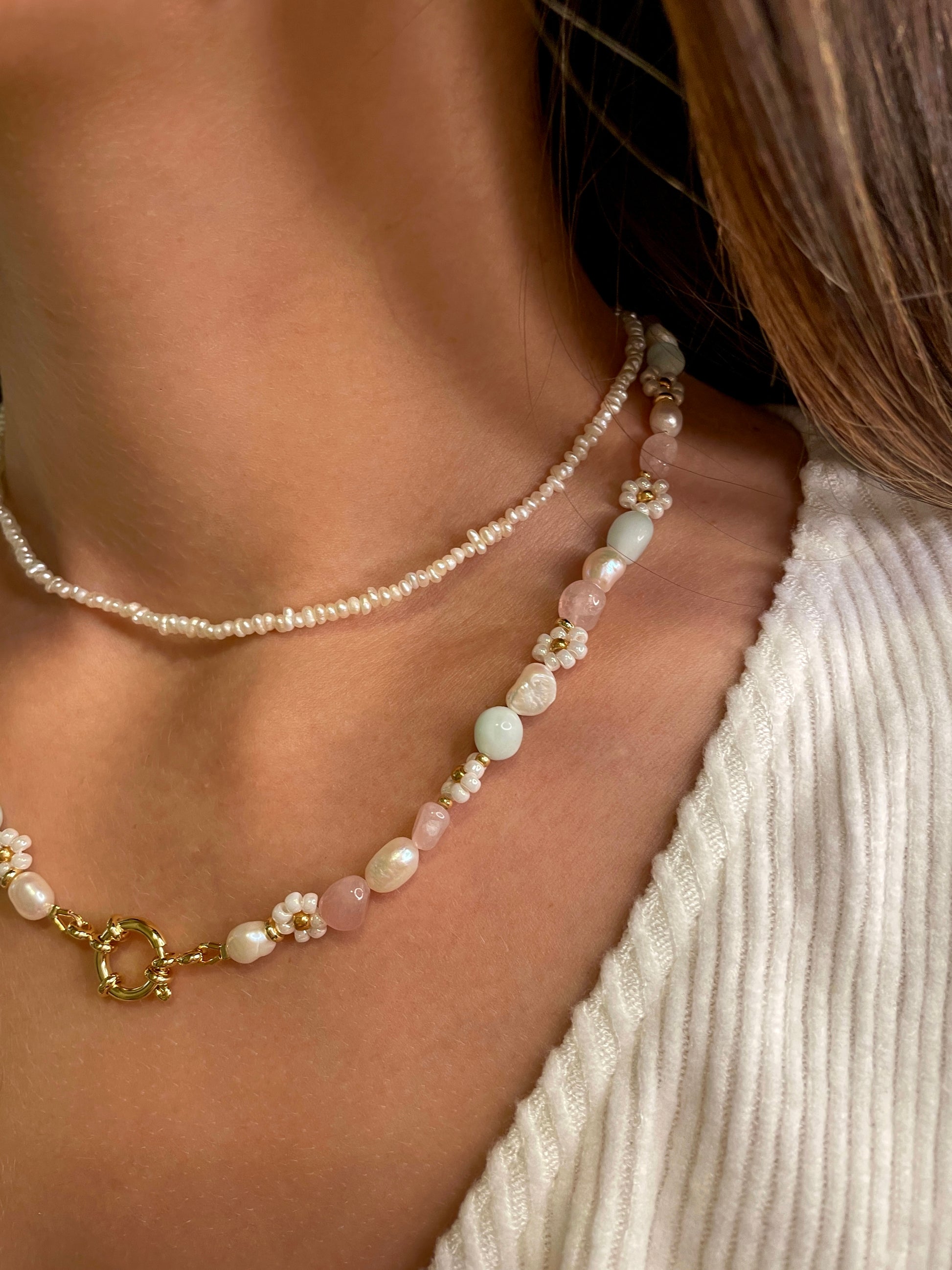 Spüre die gute Laune mit der Happiness Kette! Die schönen Natursteine in sanften Tönen bringen Freude und Glück in deinen Alltag. Verleihe deinem Outfit einen natürlichen Look und strahle von innen und außen. Ein Must-Have für alle, die das Leben auf leichte und spielerische Art genießen. ☀️🫧