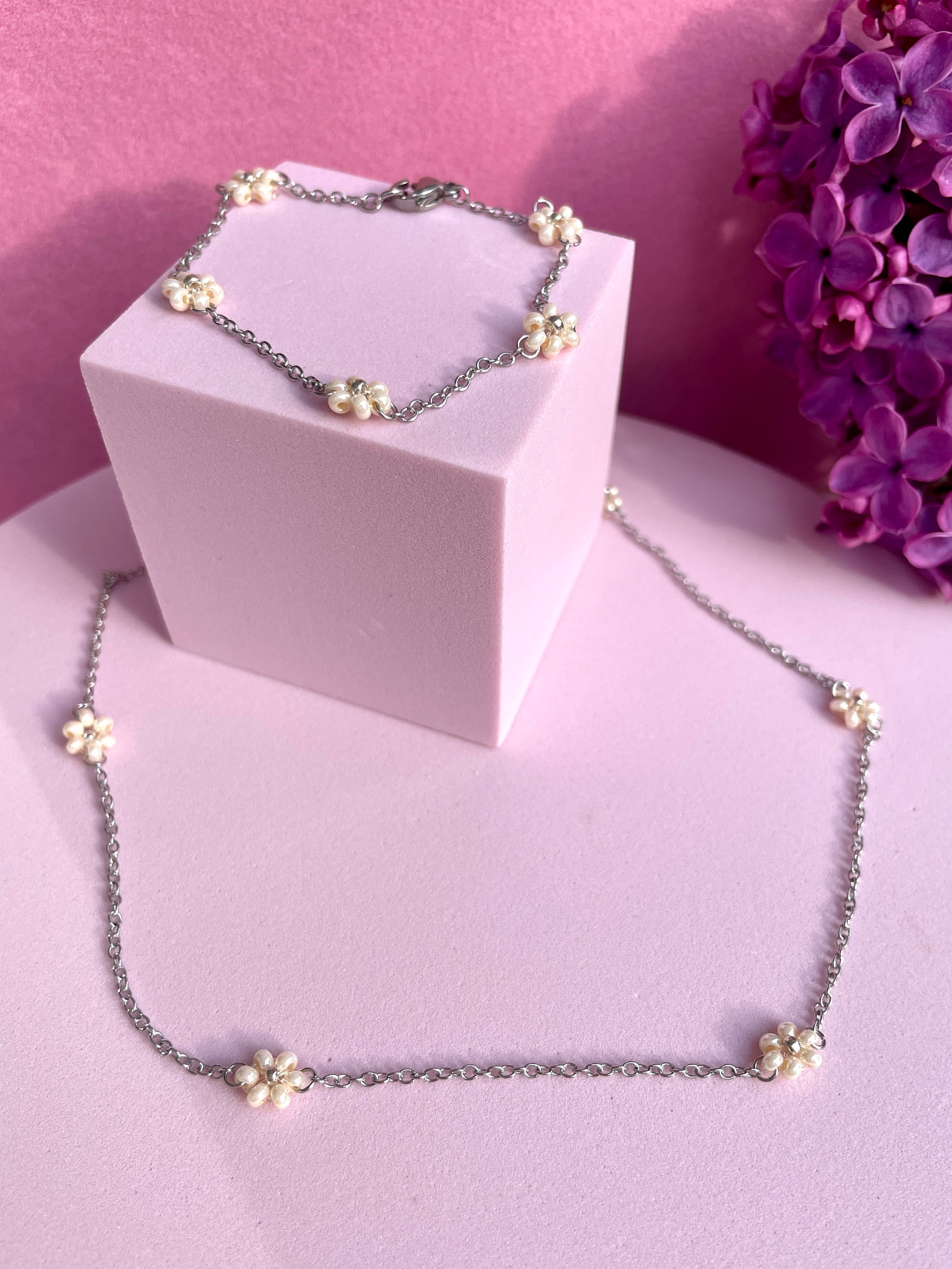 Diese Halskette ist der perfekte Begleiter für besondere Anlässe. Die eleganten Blumen aus Perlen verleihen deinem Outfit eine zarte Note. Genieße eleganten Schmuck, der deine Schönheit unterstreicht. 🌸✨