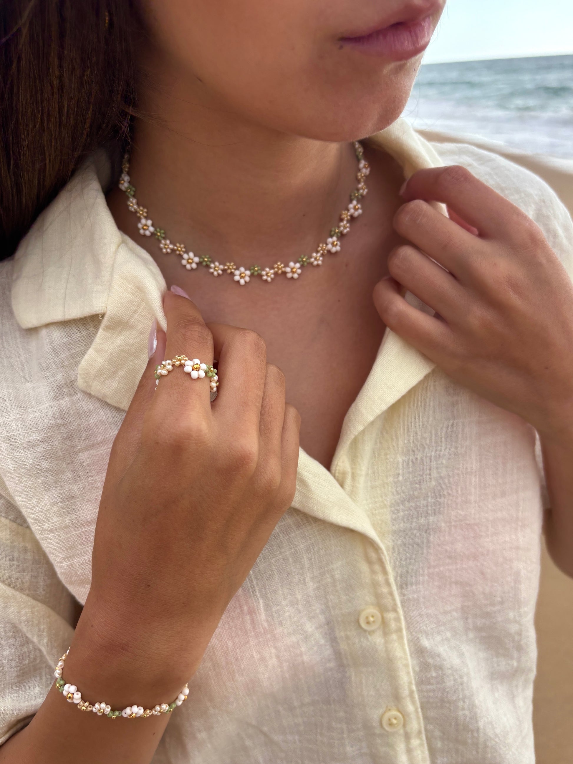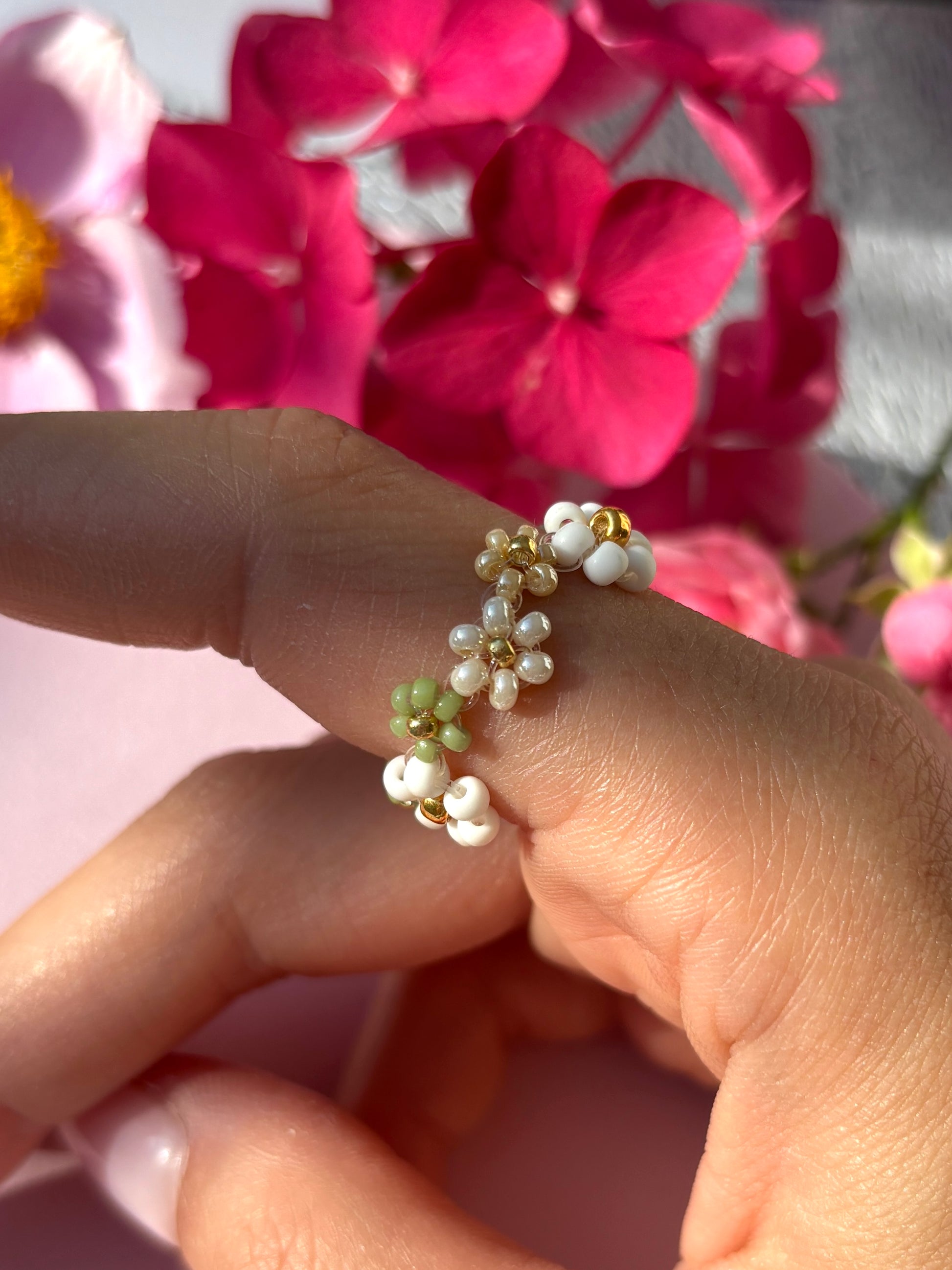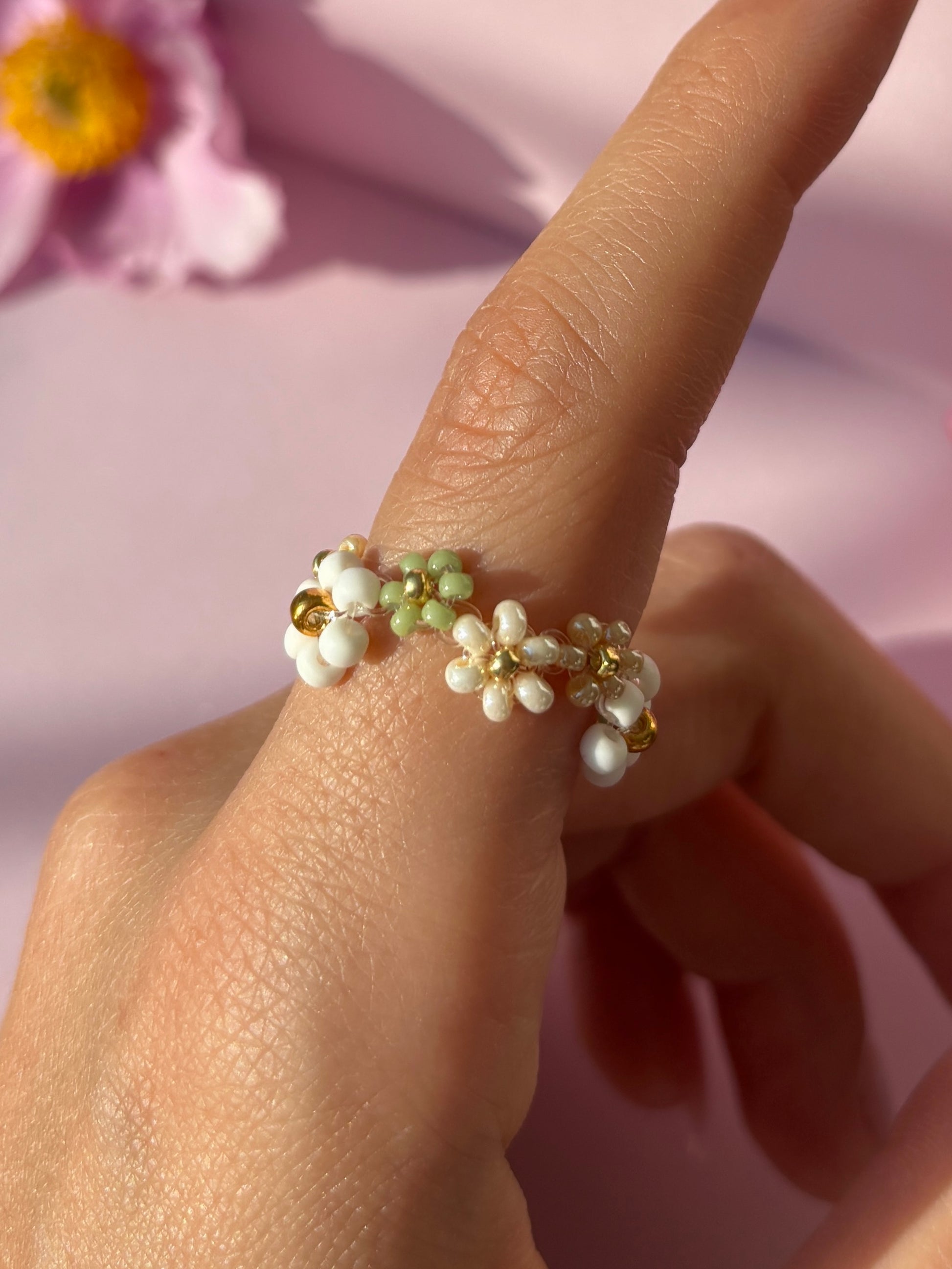 Der Ivy Ring mit seinen wunderschönen Perlen-Blumen in Naturtönen, ist perfekt für alle, die ein Akzent setzen möchten. Schmücke dich mit natürlichem Charme!