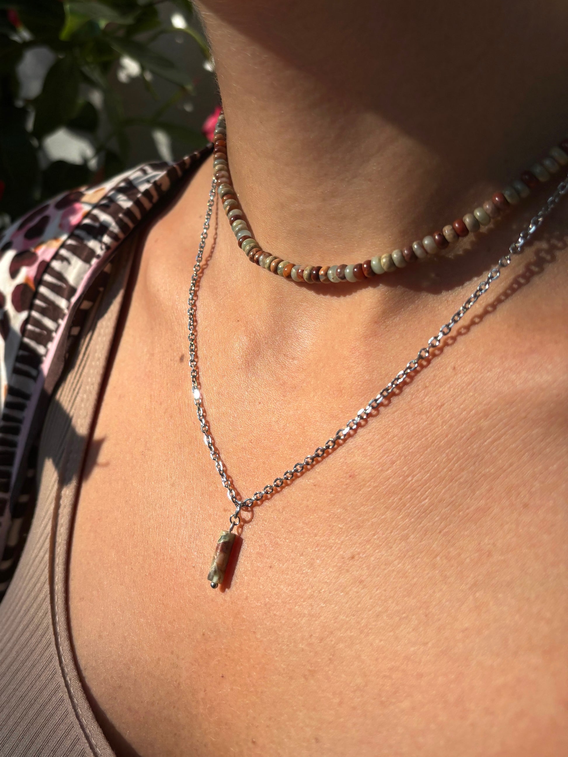 Diese elegante Jaspis Kette ist ein echter Hingucker. Der natürliche Jaspis verleiht iht eine besondere Ausstrahlung. Perfekt für den besonderen Anlass oder als täglicher Begleiter. 💚🩵