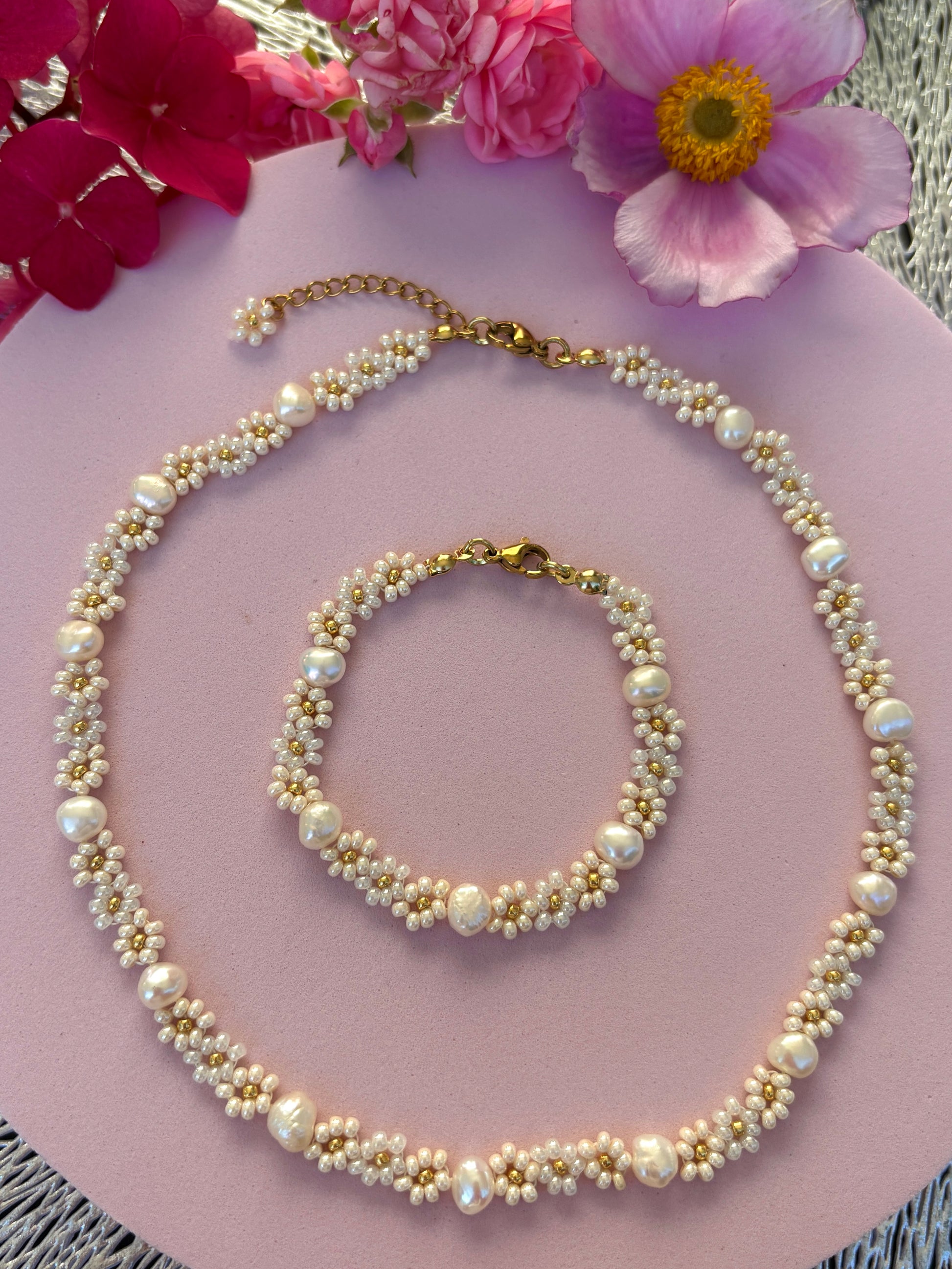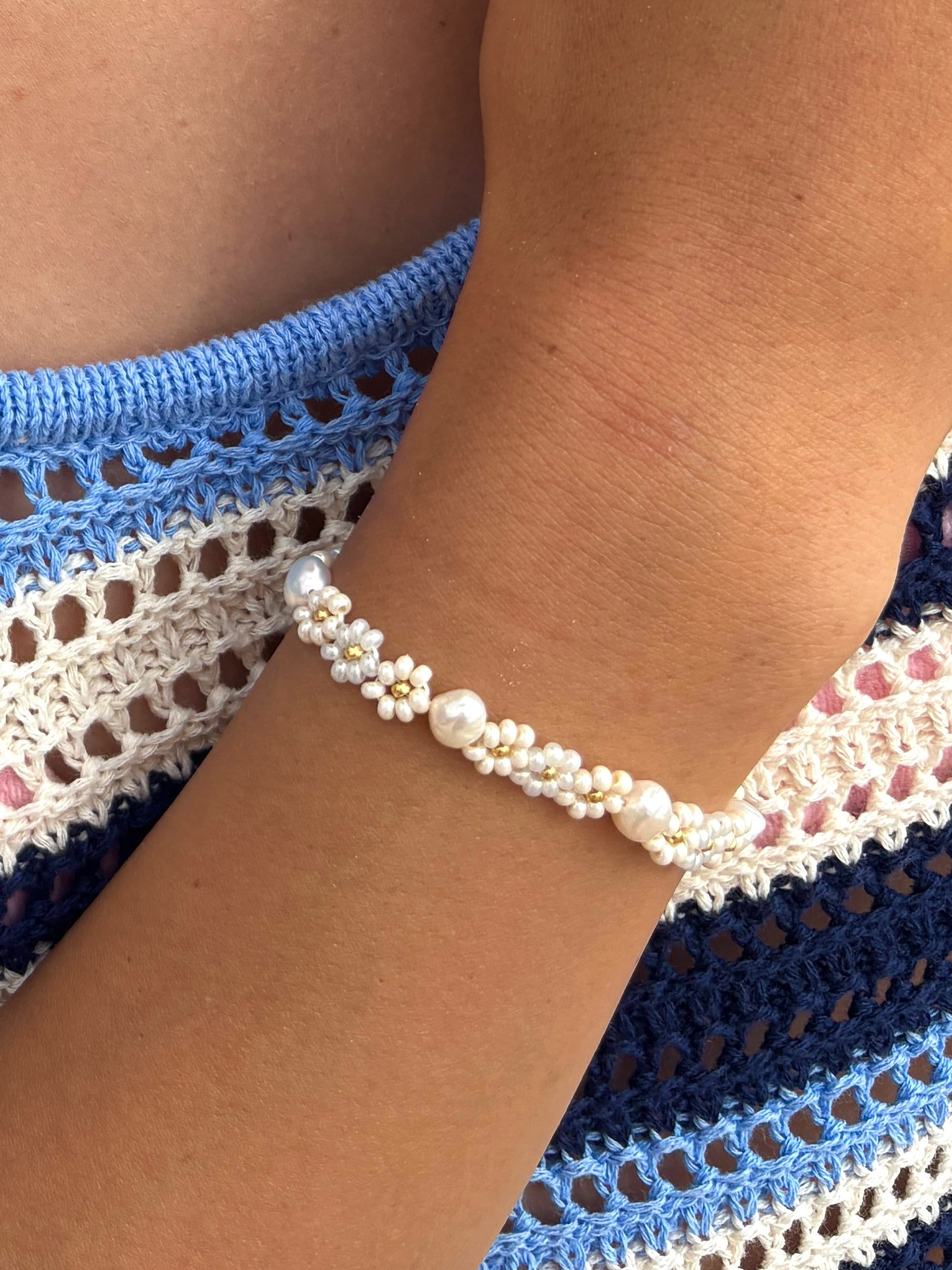 Mit dem Malea Armband bist du immer am funkeln! Die zarten Blumen und Süßwasserperlen machen jedes Outfit einzigartig, egal ob alleine oder mit der Malea Kette als Set.