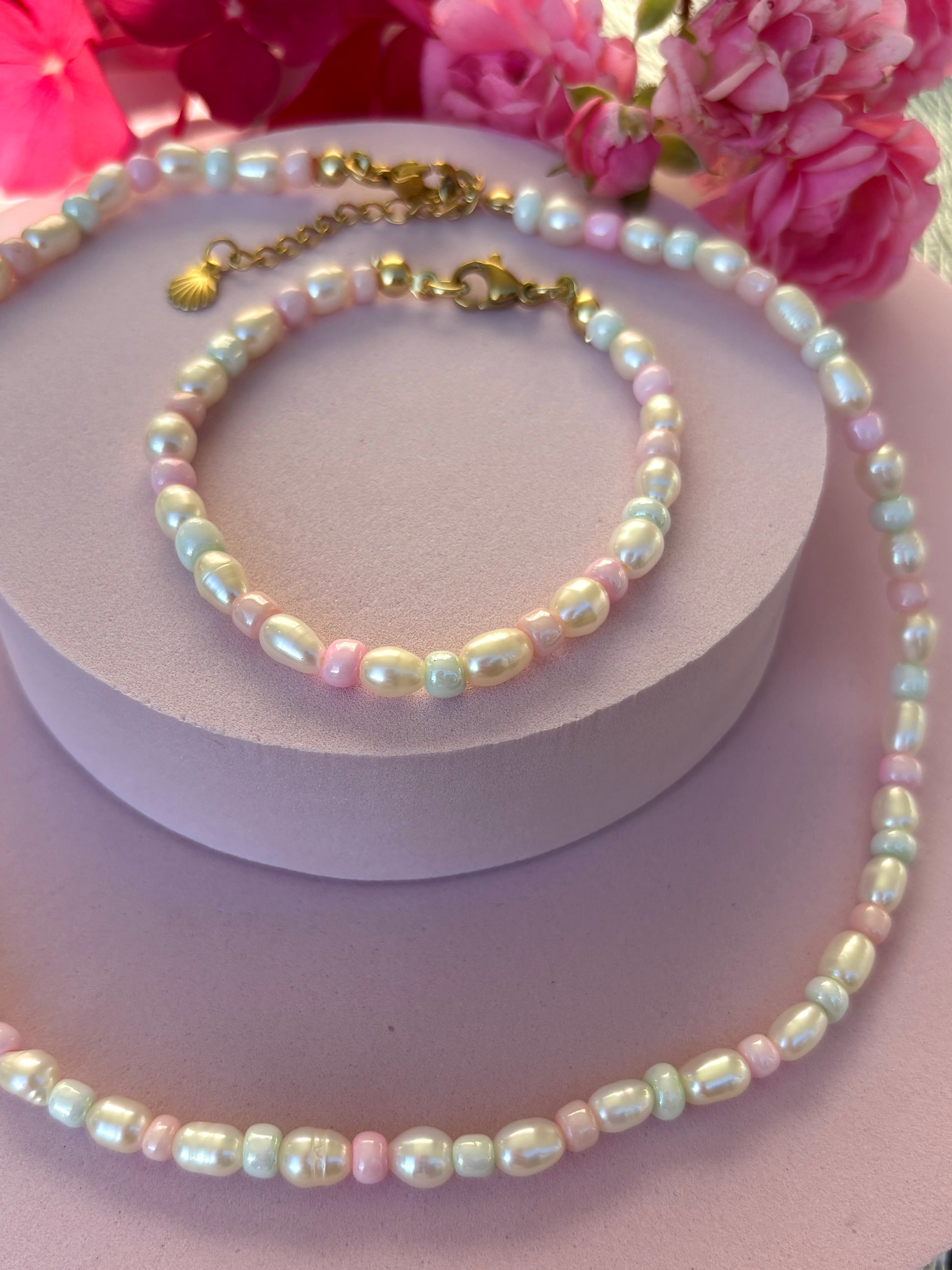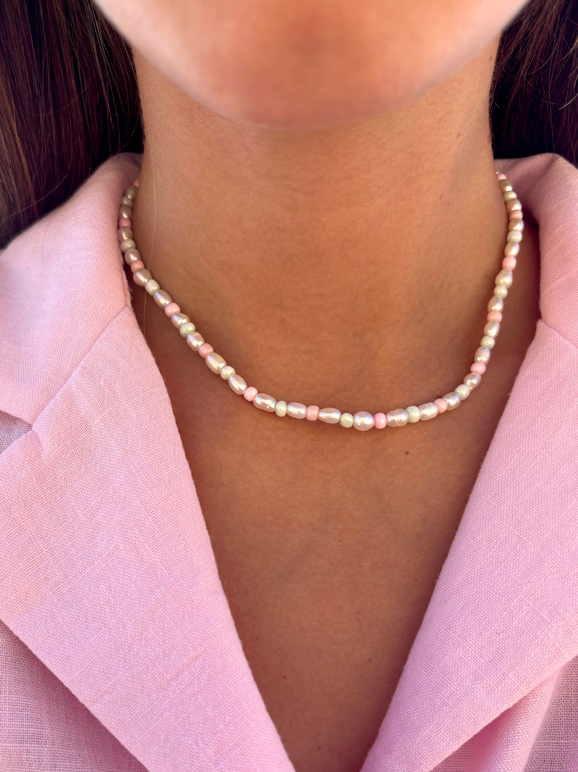 Unsere Pastel Queen Kette ist die perfekte Ergänzung für jedes Outfit! Die zarten Patell-Perlen passen sich jedem Look an und verleihen ihm eine elegante Note. Ein Must-Have Accessoire für alle Pearl Lovers!