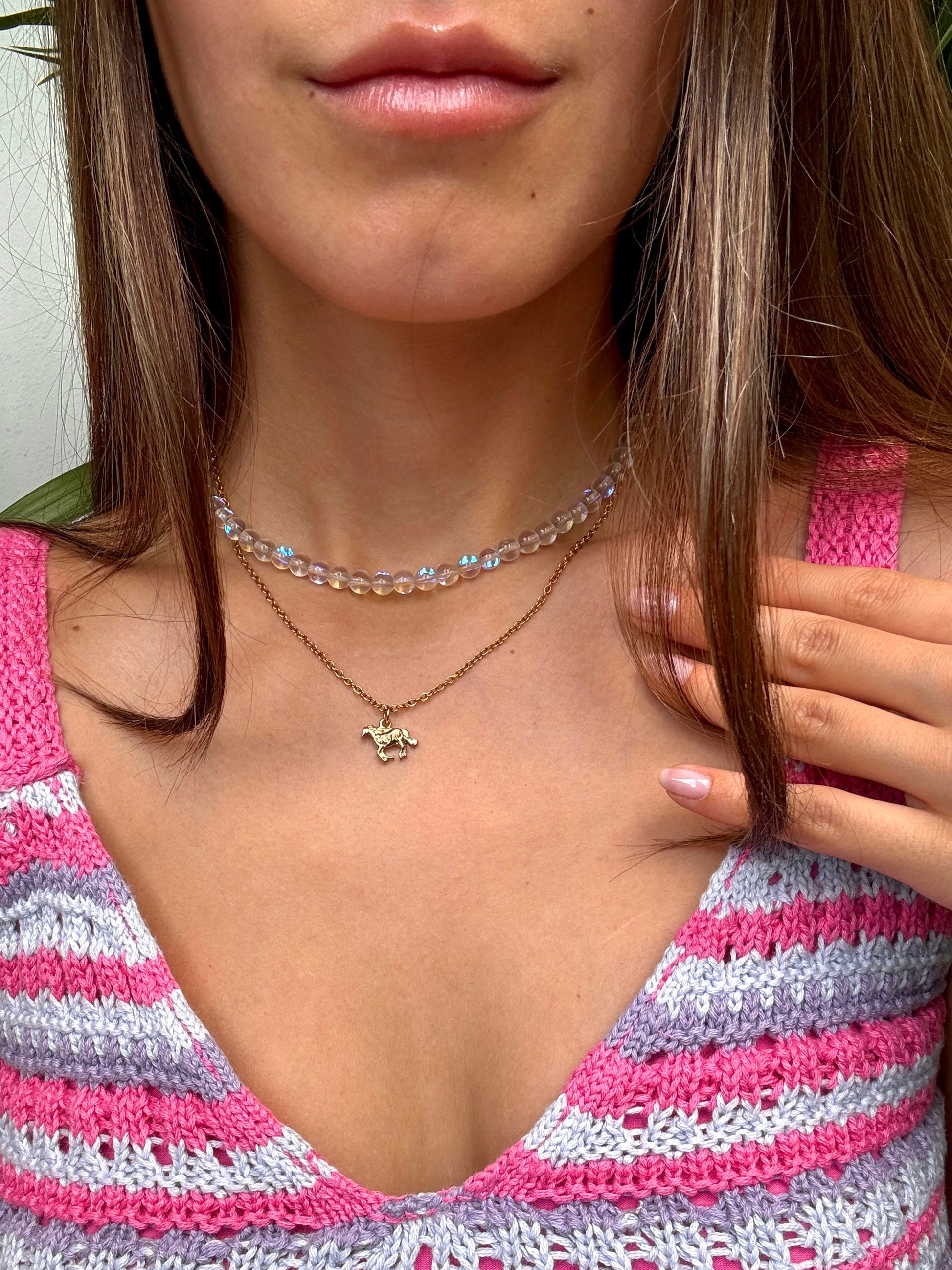 Die Pony Kette mit dem süßen Pferde-Anhänger ist perfekt für einen Layering Look geeignet. 🐴🤍🫧