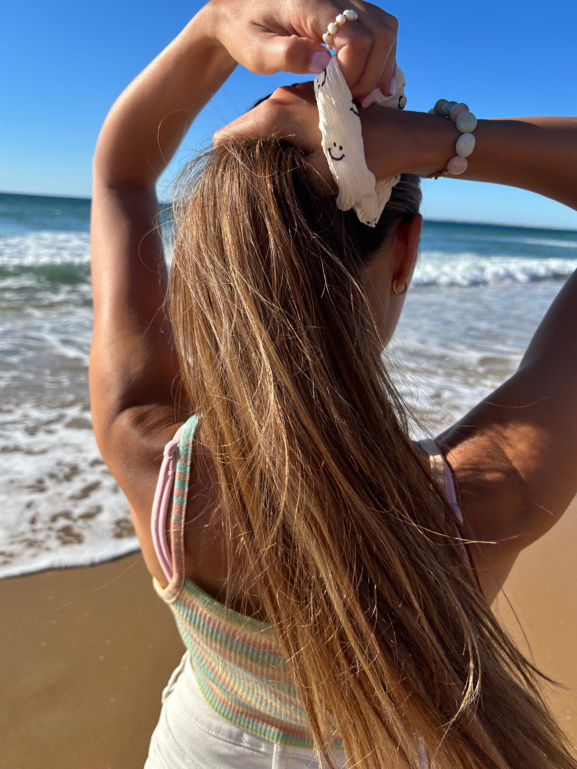 Lust auf gute Laune? Dann style deine Haare mit den süßen Smiley Scrunchies! Egal ob in den Haaren oder am Handgelenk, sie sind einfach ein Must-Have! ✨🛼☀️