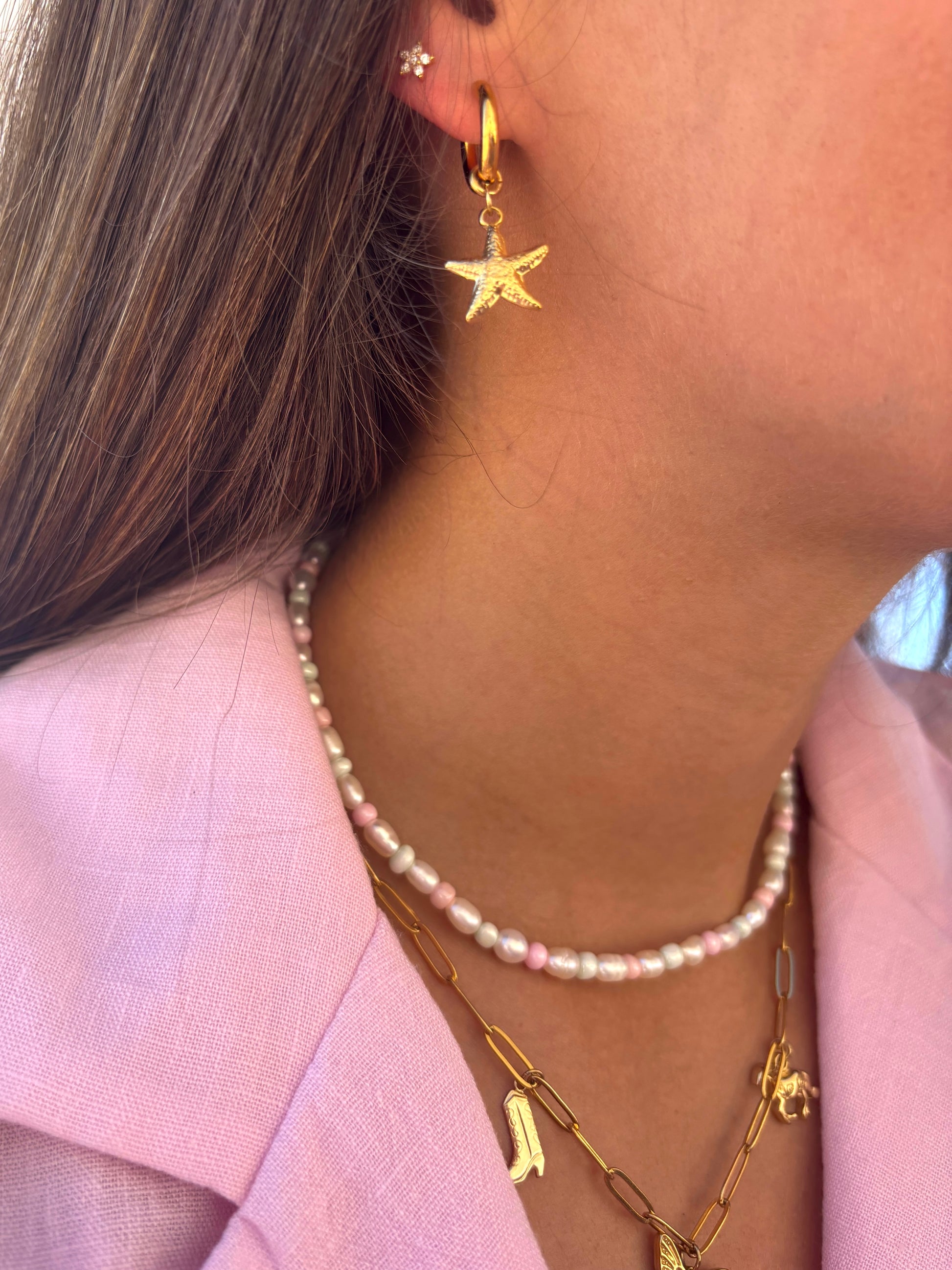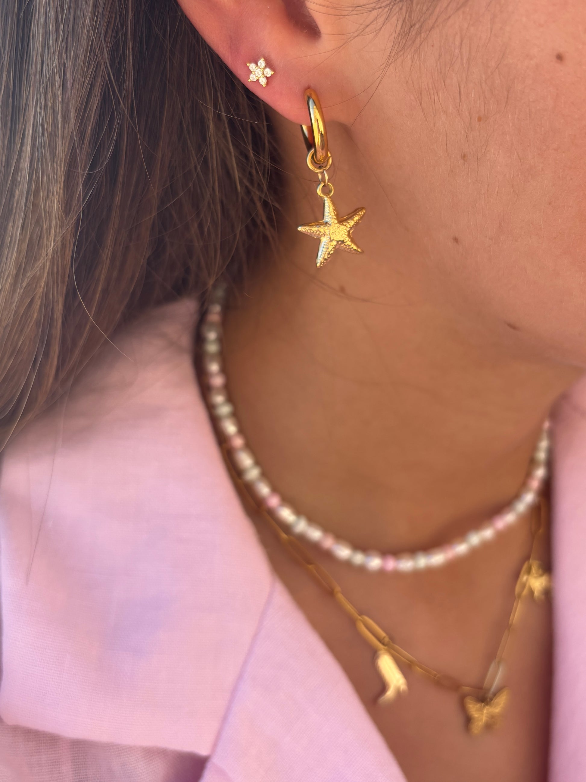 Verleihe deinen Outfits eine Prise "Star-Quality" mit diesen süßen Seestern-Charms. Mit ihrem verspielten Design und sommerlichen Vibes sind diese Ohrringe ein echter Hingucker. Ein Must-Have für alle Beach-Lover!