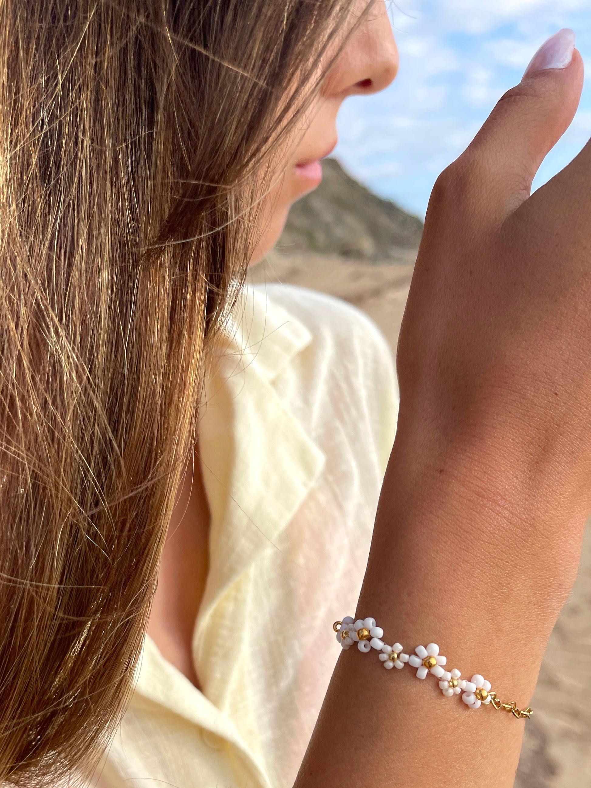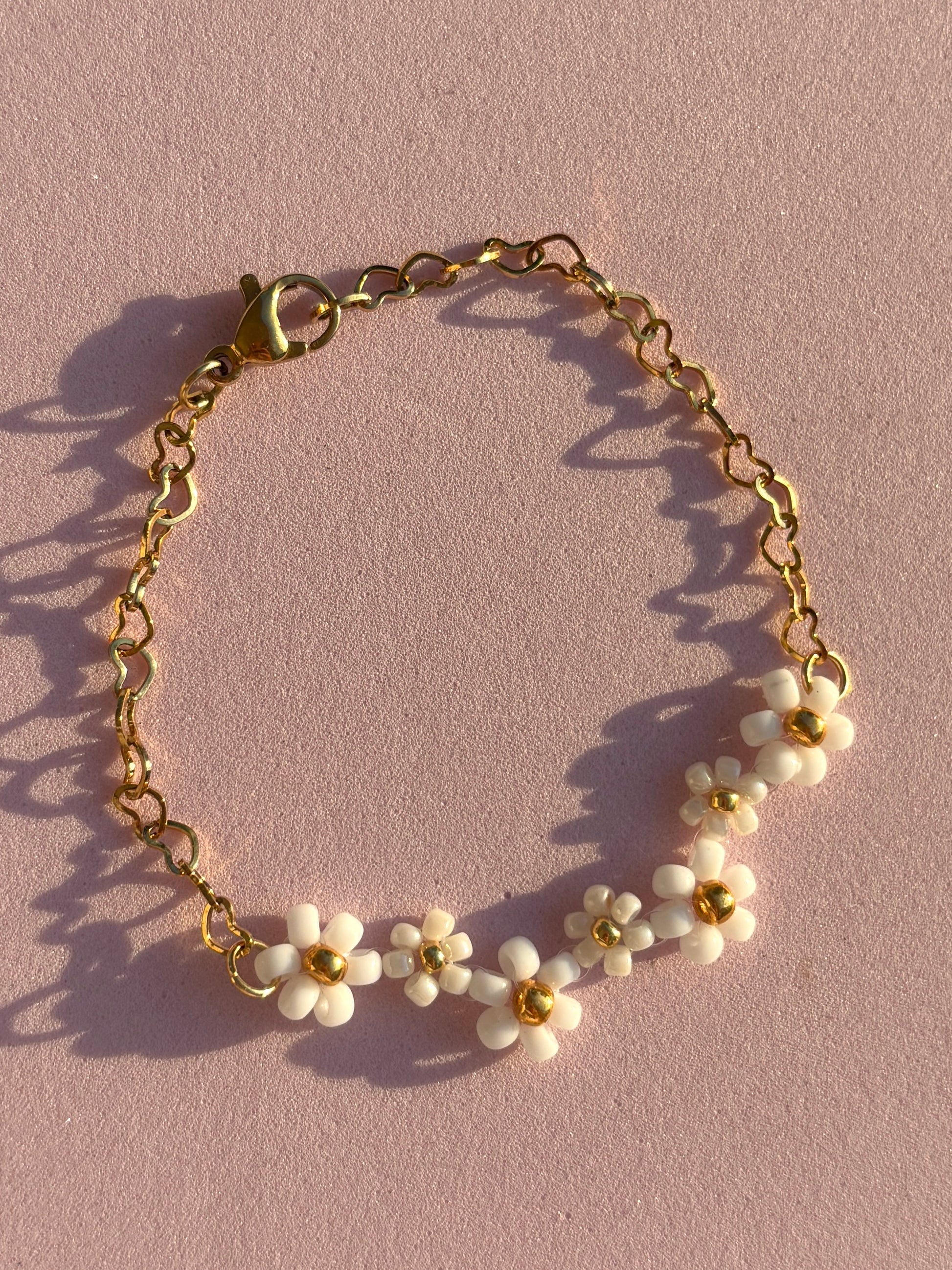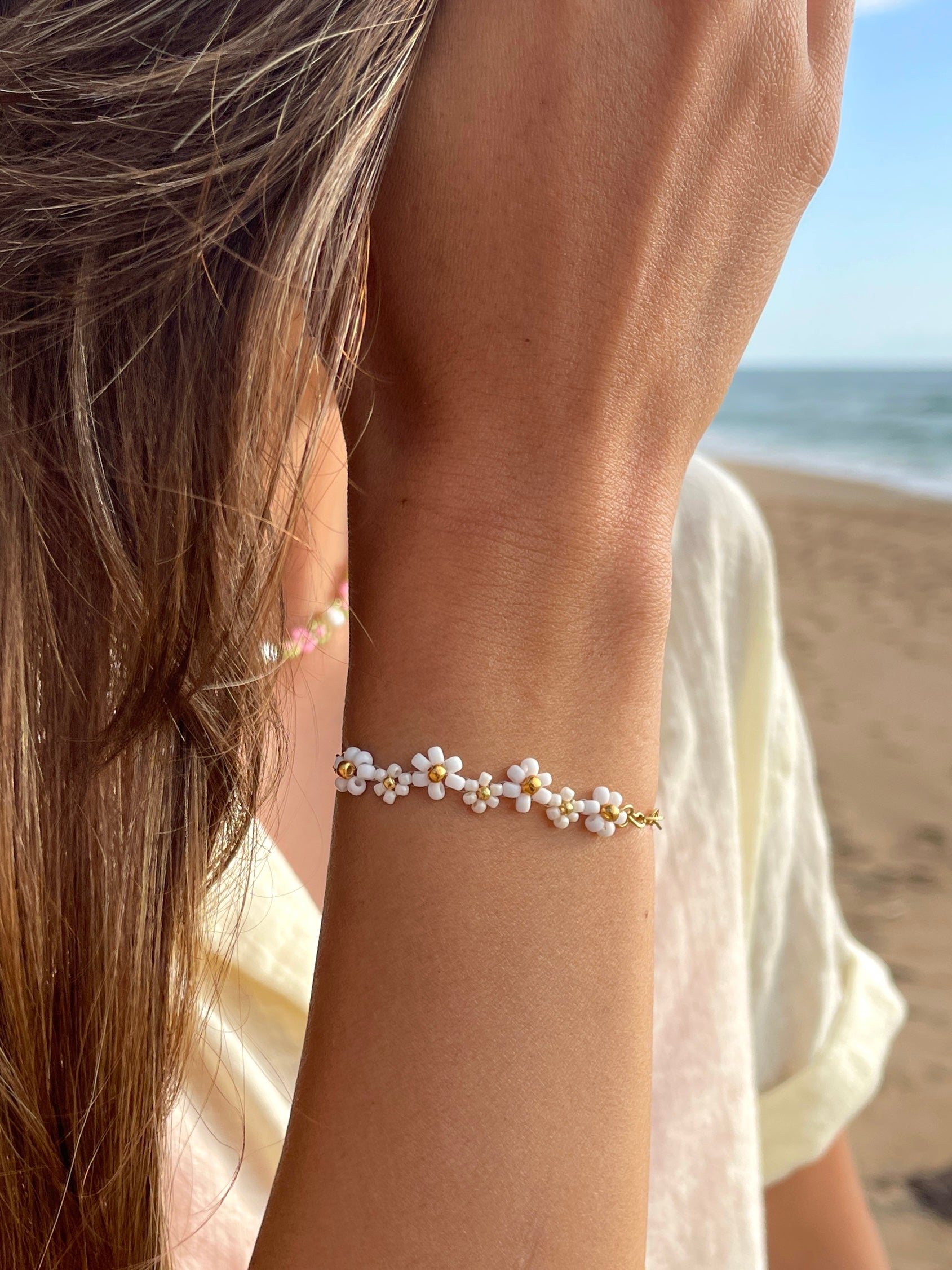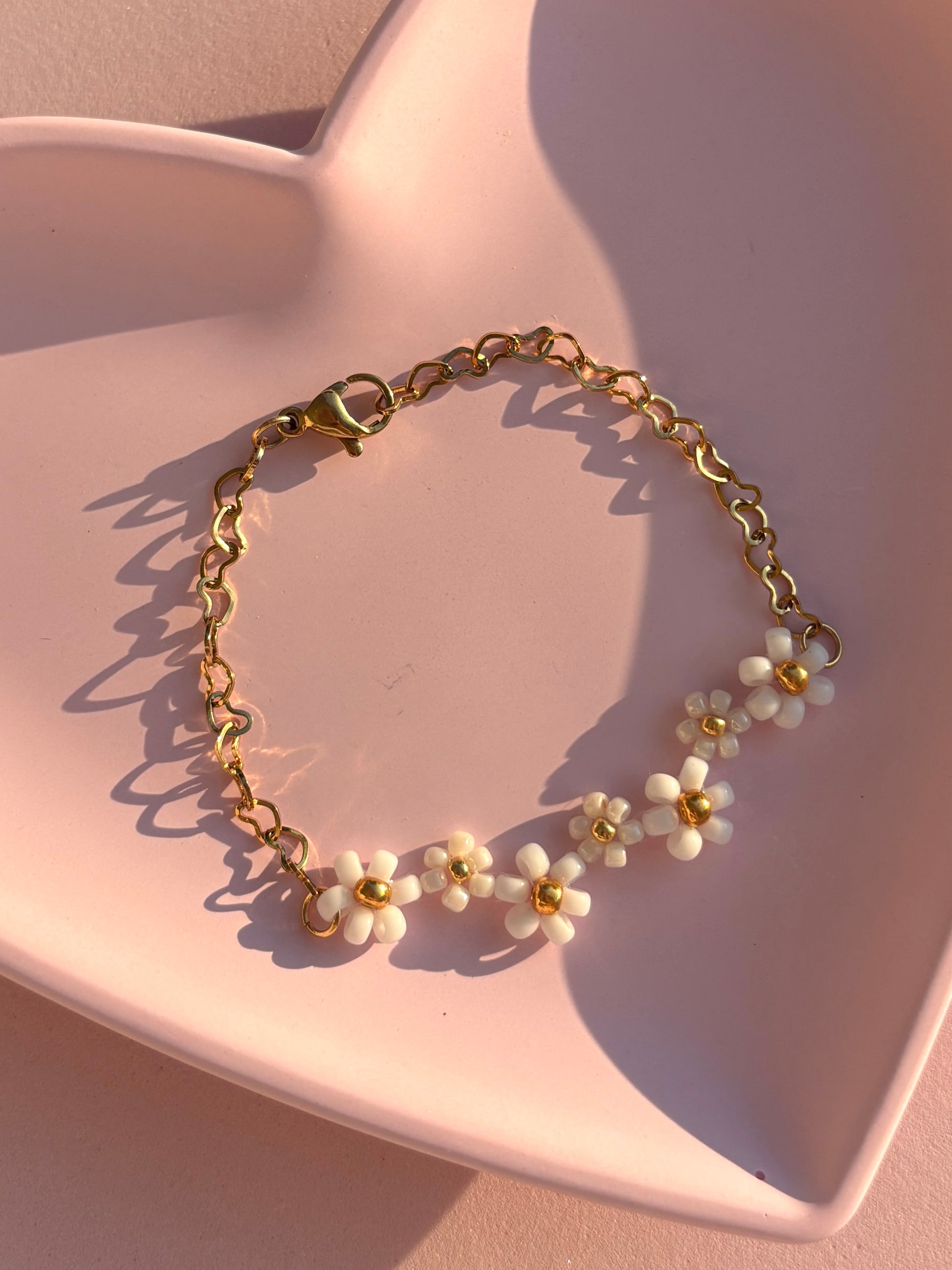 Ein zartes Armband, das die Herzen zum Blühen bringt. Mit eleganten Blumen verziert, ist es ein wahres Kunstwerk für dein Handgelenk. Lass dich von seiner zarten Schönheit verzaubern!