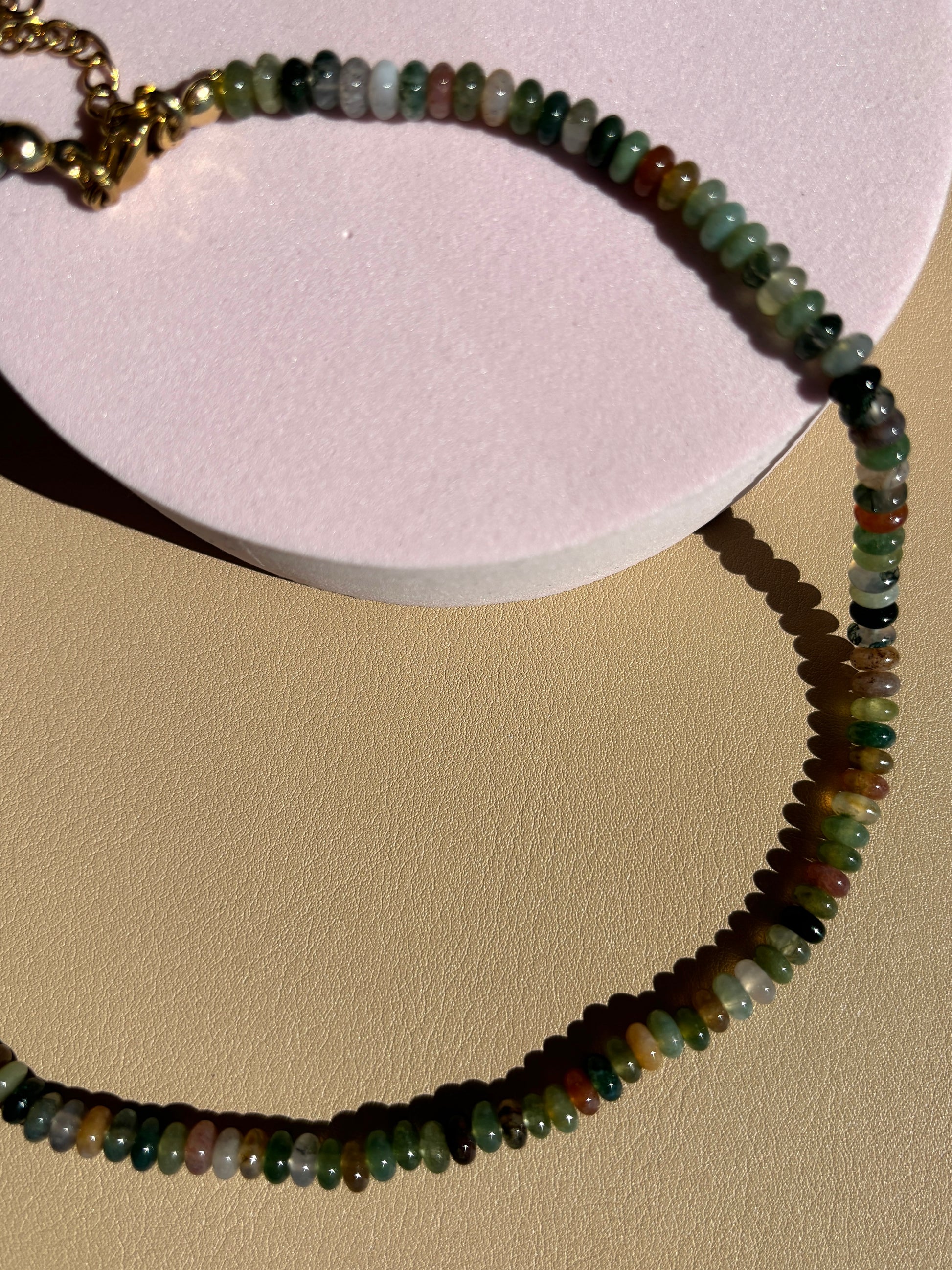 Unser Watermelon Chocker ist mit wunderschönen natürlichen Achat-Perlen verziert. Diese sorgen nicht nur für ein ästhetisches Design, sondern auch für eine natürliche und erdige Anmutung. Genieße ein Stück Natur an deinem Hals und genieße die Schönheit dieser wunderschönen Perlen. 💚🤎🩷